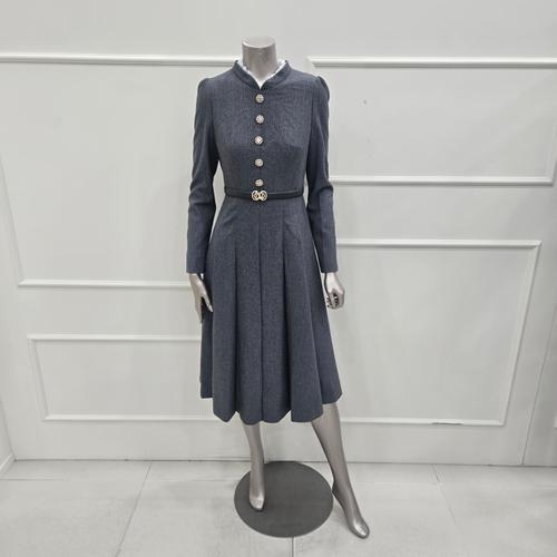 [미니멈]MZAAWO1150GY 레이스배색 하프넥 플리츠 원피스