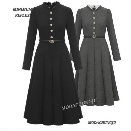 [모노무드]LMO 여성용청순 올데이 카라배색 하프슬리브 롱기장 롱드레스