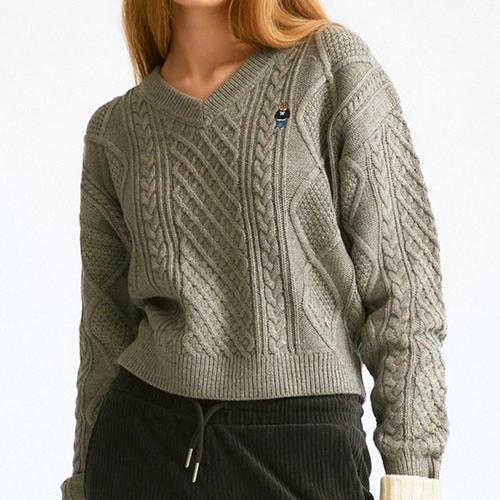 후아유 스티브 브이넥 케이블 니트 스웨터 WHKAE1104F