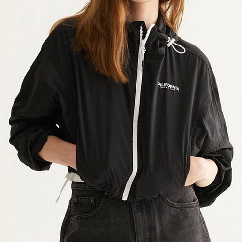 TEMU 여성용 후드, 대비되는 세로 , 넥타이가 특징인 루즈하고 캐주얼한 반팔 재킷이 특징인 한국 스타일의 시원한 가을 패션입니다.
