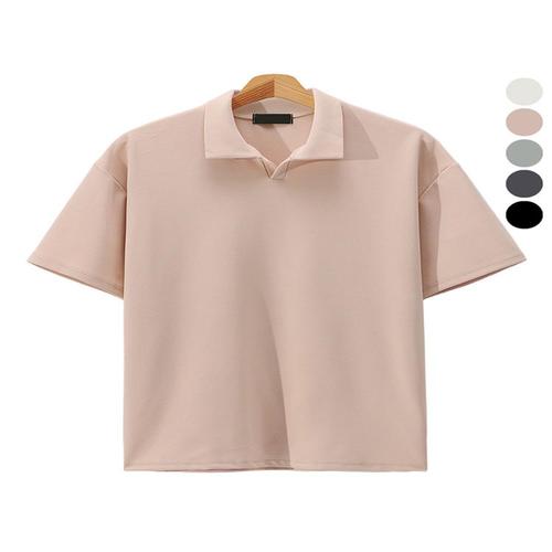 [후앙스]오버핏 링클프리 오픈 카라넥 반팔 티셔츠 OSCT7055