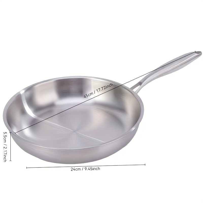 TEMU 304 스테인리스 스틸 프라이팬 1개, 스테이크 튀김용 논스틱 조리 기구, 가스레인지 및 무코팅에 적합.