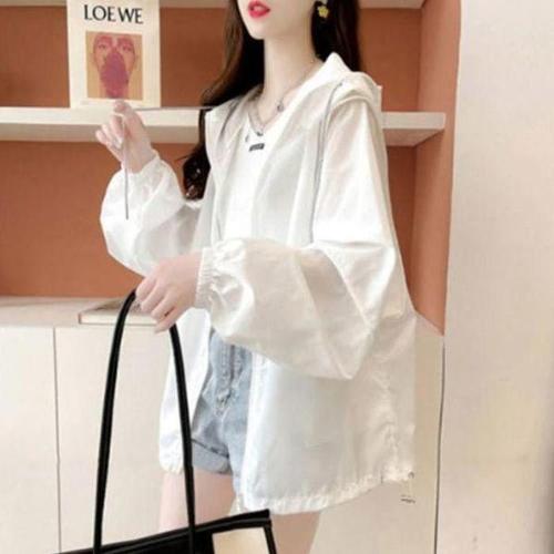 [다잇템_패션]여성 빅사이즈 윈드브레이커 후디 흰색 점퍼