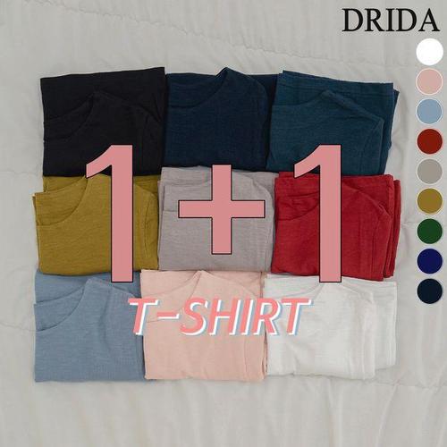 [드리다]1+1 여자 봄 여름 이너 기본 슬라브 면 7부 티셔츠 40-50대 중년 여성 미시 캐주얼 흰티 엄마옷