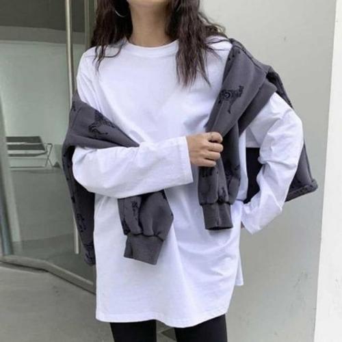 [셀러허브_여성트랜드패션]여자 맨투맨 레이어드 라운드넥 티셔츠 흰티 루즈핏