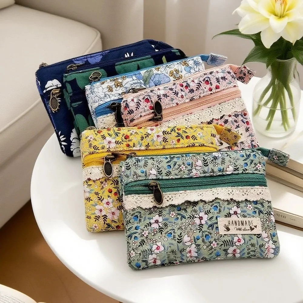 패션 신선한 꽃 동전 가방 다기능 카드 홀더 인쇄 면직물 작은 지갑 4 층 동전 지갑