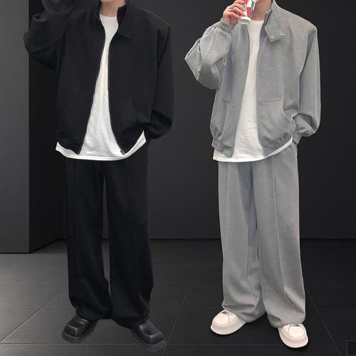 [노멀쉐이크]히터스 크롭 블루종 밴딩 와이드 팬츠 트레이닝 세트 (2color)
