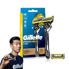 질레트 정품 프로쉴드 옐로우 매뉴얼 면도기 핸들 + 면도날 2p 세트, 1세트