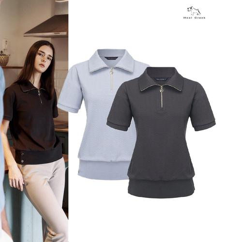 [힐크릭]여성골프웨어 가을골프티셔츠 헨리 반팔 와이드 카라티셔츠 1HCTSFU656GRB