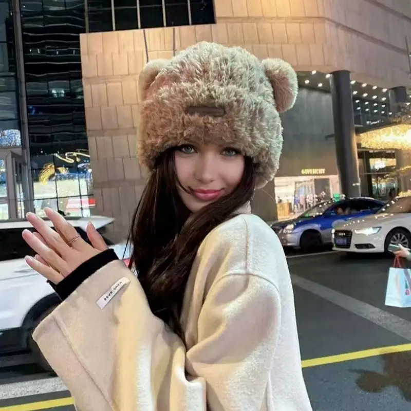 TEMU 여성용 플러시 퍼리 곰돌이 귀 & 얼굴 모자 - & 펫 트림으로 따뜻한 겨울, 추운 날씨를 위한 가벼운 부드러운 비니, 귀여운 동물 귀 & 얼굴 디자인, 포근한 겨울 액세서리, 겨울 모자, 추운 날씨 장비, 장난기 넘치는 디자인, 손세탁 가능