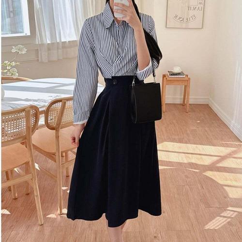[셀럽하우스]여성 TMXF3898 롱 원피스 봄 가을 패션 스트라이프 투피스 ST