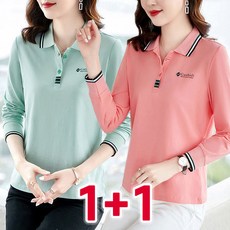 1+1 중년 여성 폴로 골프 긴팔티 봄 가을 골프웨어 캐주얼 슬림핏 이너 상의 카라 긴팔 티셔츠 루즈핏 데일리 폴로셔츠 엄마옷 2장세트 빅사이즈