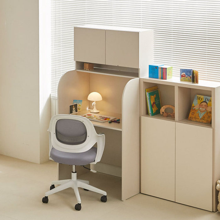 장인가구 토모 집중력 1인용 독서실책상 일체형 800+상부수납장
