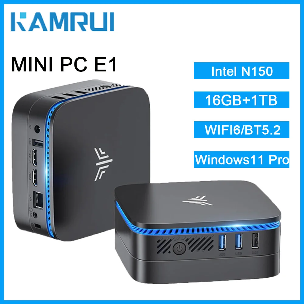 KAMRUI 미니 PC 인텔 알더 레이크 N150 16GB RAM 1TB M.2 SSD 윈도우11프로 WIFI6 BT5.2 미니 데스크탑 컴퓨터 가정용 업무용 비즈니스용