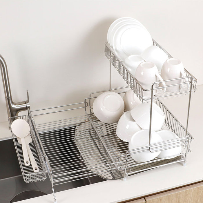 친절한탄씨 2단 일체형 스텐받침 주방식기 건조대 설거지건조대