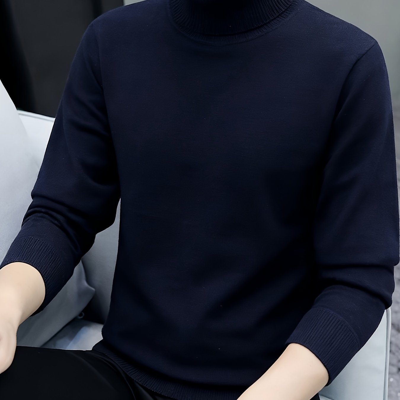 TEMU 남성용 소프트 스트레치 겨울 니트 스웨터 - 클래식 하이넥 솔리드 컬러 긴팔 풀오버, 가을 & 겨울에 적합한 캐주얼 솔리다리티, 내구성 좋은 쉬운 관리 필수 아이템 (손세탁/드라이클리닝)