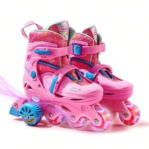 어린이 롤러 스케이트 더블 행 4 휠 스케이트 신발 조정 가능한 크기 슬라이딩 슬라롬 인라인 스케이트 어린이 소년 소녀 장난감 선물