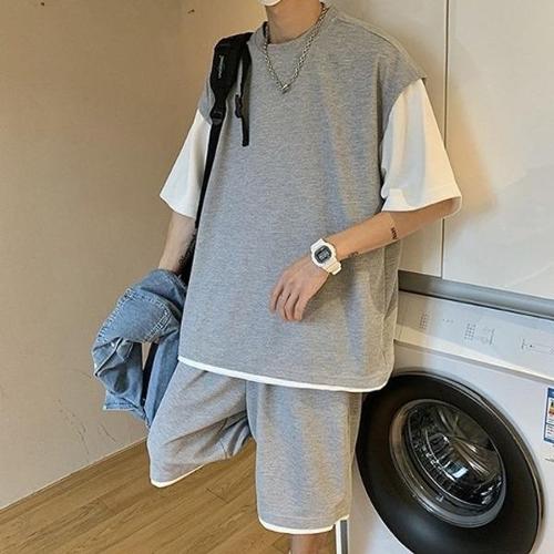 [엄지척]남성 2컬러 레이어드 반팔 반바지 세트 셋업_20430661_667501