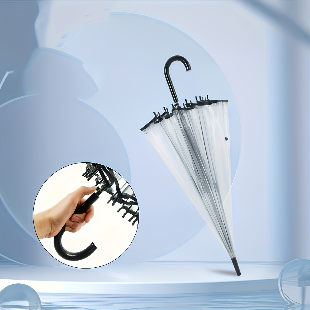 TEMU 1개 16갈래 대형 투명 J자형 손잡이 우산, 방풍 및 내구성, 자동 개폐 긴 손잡이 남녀 공용 우산, 결혼식, 어머니날, 할로윈, 크리스마스에 완벽한 선물