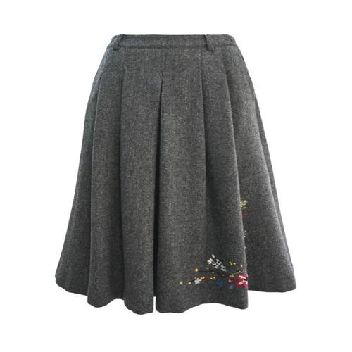 [비꼴리끄]울 자수 뒷밴딩 맞주름 스커트 B234WK3060