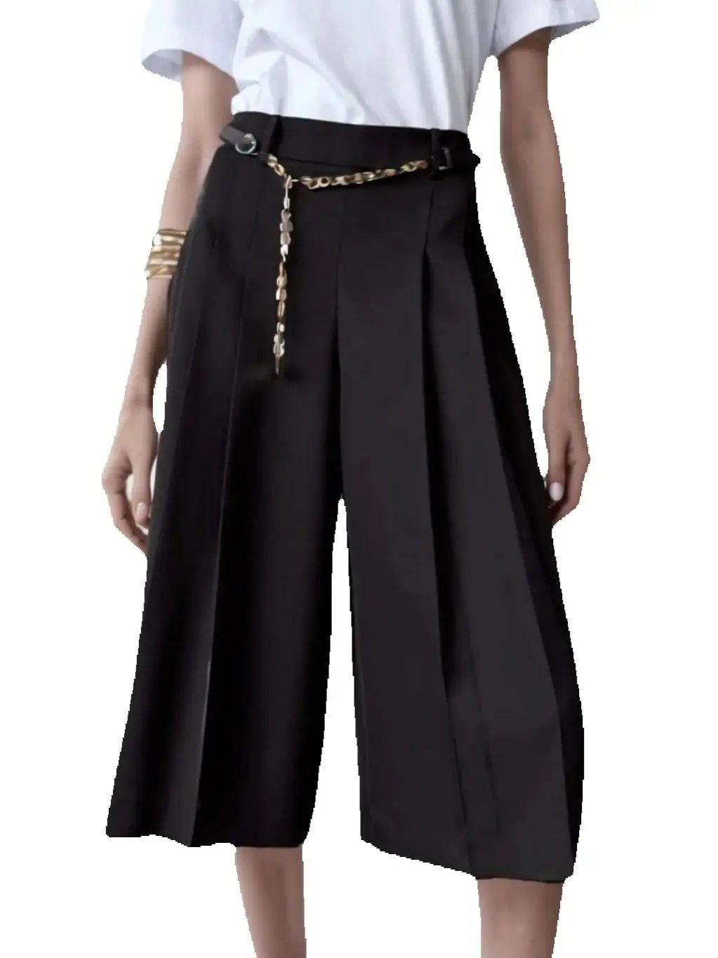 2026 패션 여성 빈티지 하이웨이스트 스트레이트 팬츠 벨트 포함 여성 캐주얼 여름 우아한 무릎 길이 스트리트 와이드 레그 팬츠