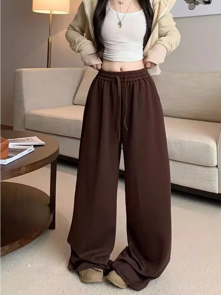 TEMU 2023년 성격 출퇴근용 미드웨이스트 트라우저, 외국 무역 루즈 타입 단색 유럽 및 미국 와이드 레그 팬츠 대형 사이즈