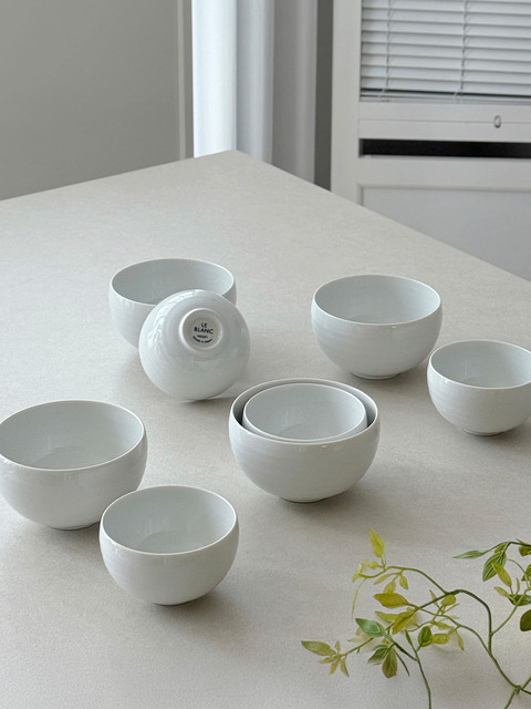 르블랑 달항아리 4인 둥근 밥공기, 국그릇 세트 MADE IN JAPAN