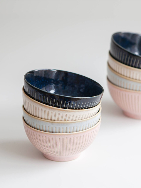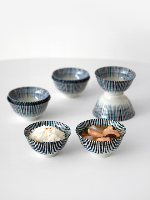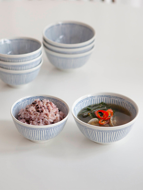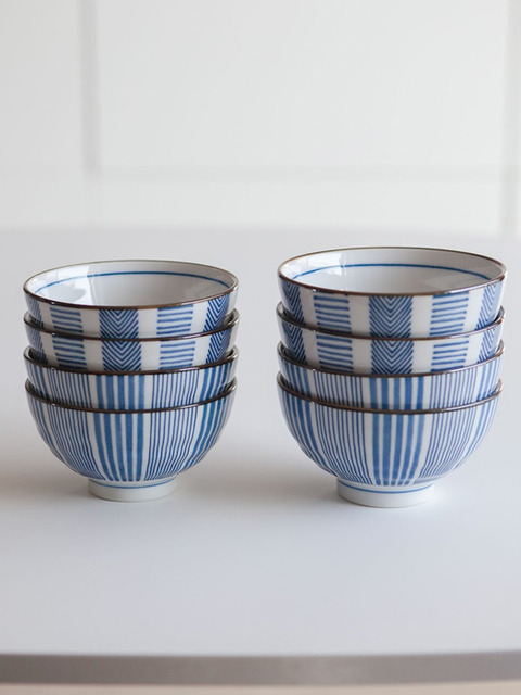 [니코트] 니코트 블루 스트라이프 4인 밥공기, 국그릇 세트 MADE IN JAPAN