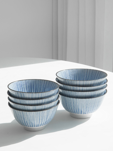 블루 스트라이프 4인 밥공기, 국그릇 세트 MADE IN JAPAN