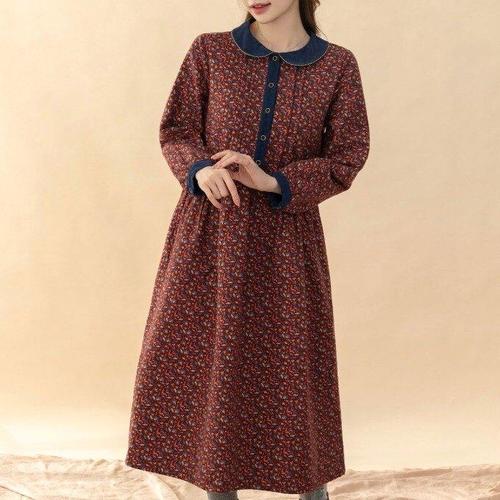 [디얼마미][디얼마미] 골덴 카라 꽃 본딩 원피스 /마담 미시 중년 여성 빅사이즈 40대 50대