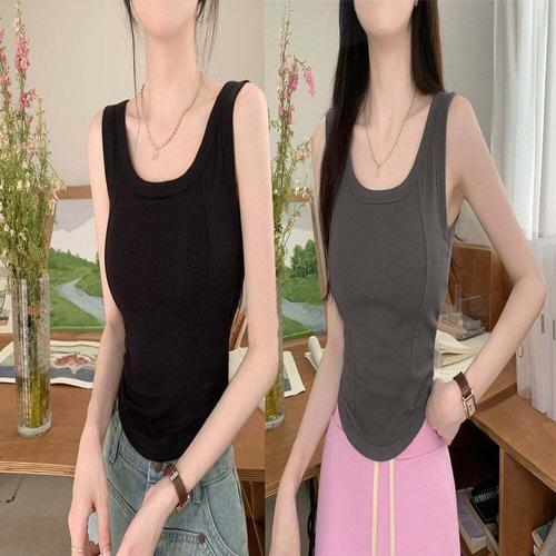 [셀럽하우스]U넥 WMCF4711 기본 이너 나시티 민소매 티셔츠 런닝 탑 캡 내장
