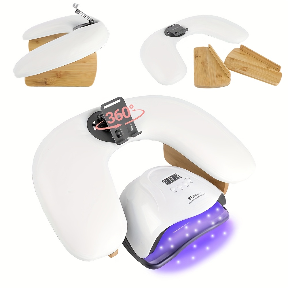 TEMU YY 우드 U자형 핸드 필로우 스탠드 - 베벨드 네일 아트 핸드 필로우 휴대폰 홀더, 나비 네일 아트 팔걸이 & 조절 가능한 휴대폰 클램프, 홈 & 살롱용 투핸드 매니큐어 테이블|네일아트|젤네일