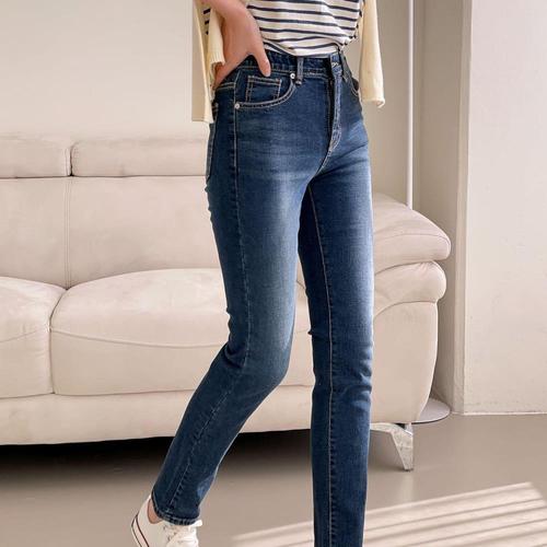 [옷자락] 여자 빅사이즈 4XL사이즈 속밴딩 워싱 일자핏 청바지