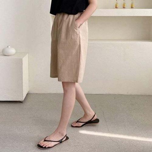 [셀러허브_여성트랜드패션]ONM 커플 여자 린넨 5부바지 밴딩 쿨링 트렌드