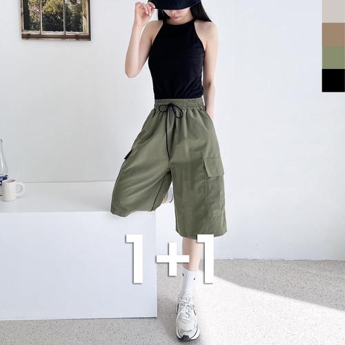 일칠사 [1+1] 시원한 린넨 5부 면 밴딩 반바지