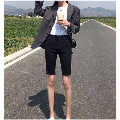 [에이치플러스몰]여성5부바지 1P 여자 팬츠 하이웨스트 스판 쫄바지