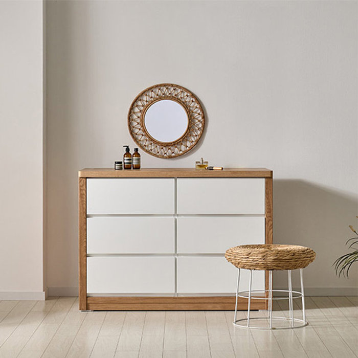 [보루네오]모던 심플 속깊은 3단 6칸 광폭 서랍장 (가로 1.2m) + 슬라이딩 수납 거울