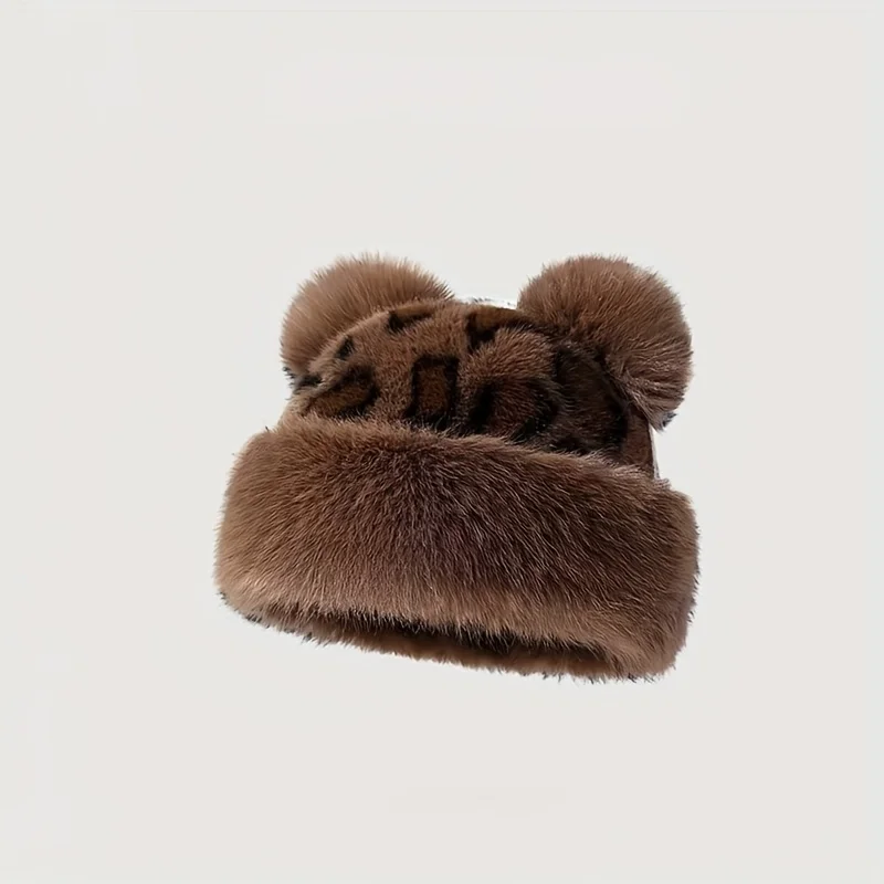 겨울의 따뜻함과 패션을 위한 곰 귀가 달린 여성용 플러시 인조 모피 모자. 겨울 모자