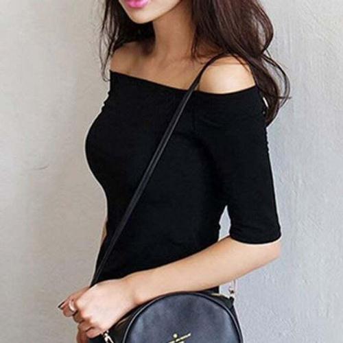 [셀럽하우스]7부소매 UPJD3096 입술넥티 티셔츠 슬림핏 반팔 오프숄더 셔링