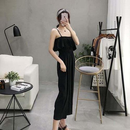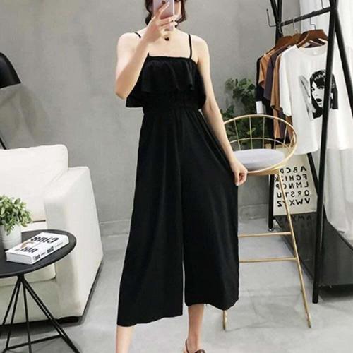 [셀럽하우스]무지 SCQH3912 여자 밴딩 끈나시 7부 2컬러 베이직 점프수트