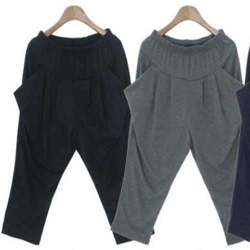 [옷자락]여성 7부바지 배기팬츠 촉감좋은 부들부들 핀턱 트레이닝