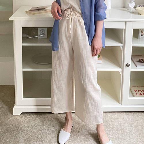 LKP074 5컬러 와이드팬츠 7부 린넨 밴딩 마 WD46894