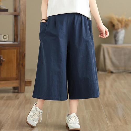 [옷자락] 여성 캐주얼 무지컬러 7부 밴딩 통바지 팬츠