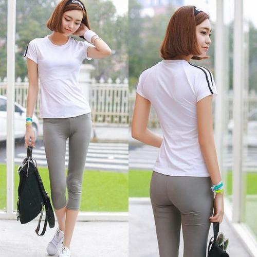 [엄지척]여자 홈트 요가 트레이닝 7부 반팔 스판 땀복 세트 U_20388706_667501