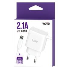 라피드 가정용 충전기 2.1A 8핀 일체형 1.2m, 1개