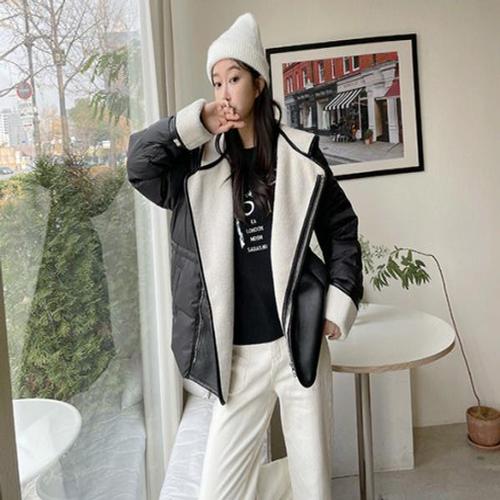 [OFM74RQT]캐주얼 오버핏 하프 래더 자켓 패션 여자 점퍼
