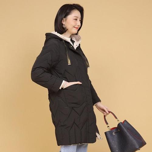 [애비뉴투지]엄마옷 니트배색 후드 누빔 여성 겨울 롱 패딩 점퍼 J01351 50대 60대 중년여성