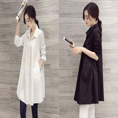 [셀러허브_여성트랜드패션]여자 남방 임부복 A라인 원피스 셔츠 체형커버 롱