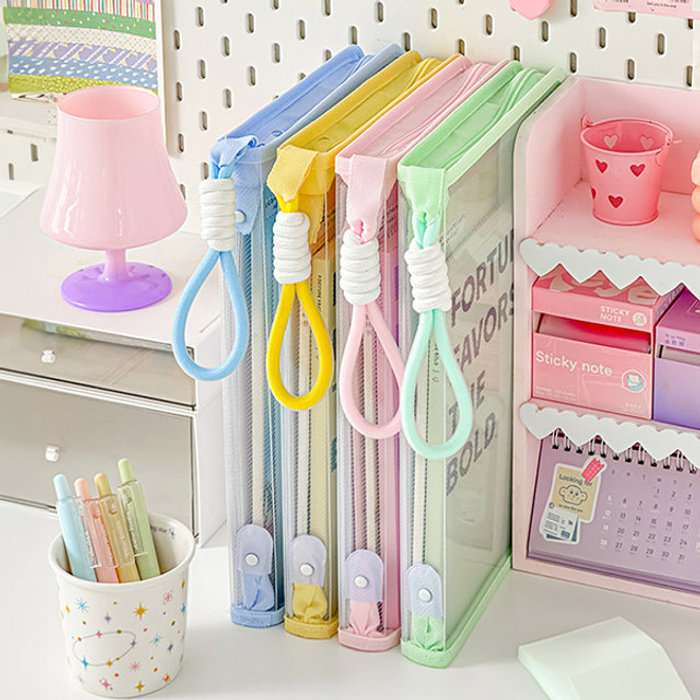 히키스 히키스 A4반투명 자율학습 파스텔 클립 지퍼 파일홀더