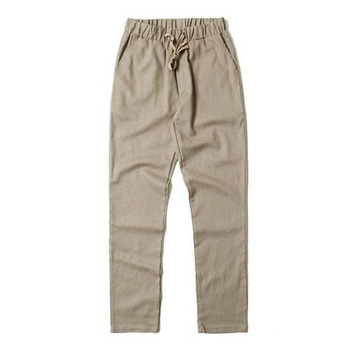 남자 여름 테이퍼드 일자핏 밴딩 린넨 팬츠 NE-PTS-Q027-베이지